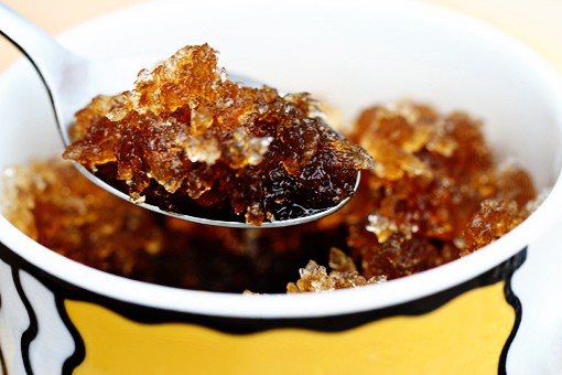 Roer de suiker door de hete espresso totdat hij is opgelost. Laat afkoelen. Zet de espresso een nachtje in de vriezer, maal de volgende dag de bevroren espresso in de keukenmachine fijn. Heerlijk als ontbijt of dessert!