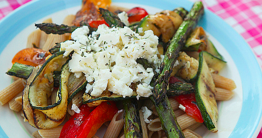 Pasta met gegrilde groenten en feta