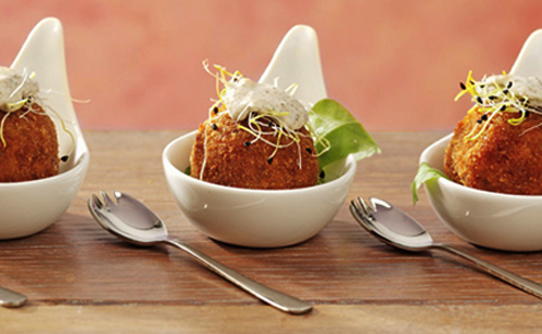- Tip: Vries na het paneren de balletjes los van elkaar in. Zo heb je altijd een borrelhapje bij de hand! En wil je het écht lekker maken? Vul ze dan met een heel klein stukje mozzarella.
