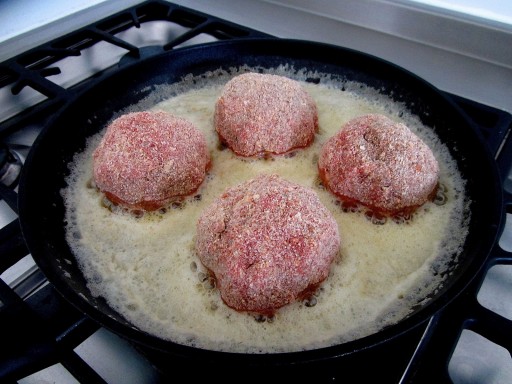 - Zet een kommetje bloem of paneermeel klaar. Vorm ronde of platte ballen zonder scheurtjes. Haal daarna de gehaktballen door de bloem of het paneermeel en bak ze voorzichtig rondom bruin in de boter.
