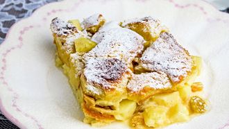 Briochepudding met appeltjes en rozijnen