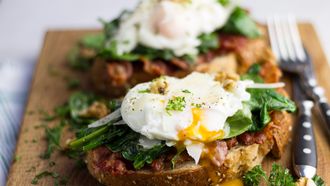 Decadent broodje met bacon, spinazie en een gepocheerd ei