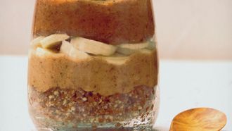Gezonde banoffeetaart in een glaasje van Ella Woodward