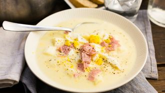Verse aspergesoep met ham en eieren