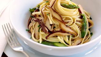 Supersnel en superlekker: linguine met shiitake & groene asperges