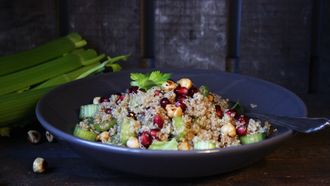Quinoa-salade met granaatappel, bleekselderij en hazelnoot