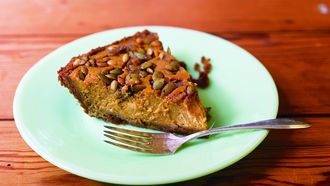 Pompoentaart met gekonfijte pompoenzaadjes
