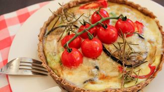 Taartje van gegrilde aubergine, tomaat & gorgonzola