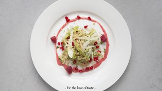 Quinoa-venkelsalade met granaatappel en frambozen