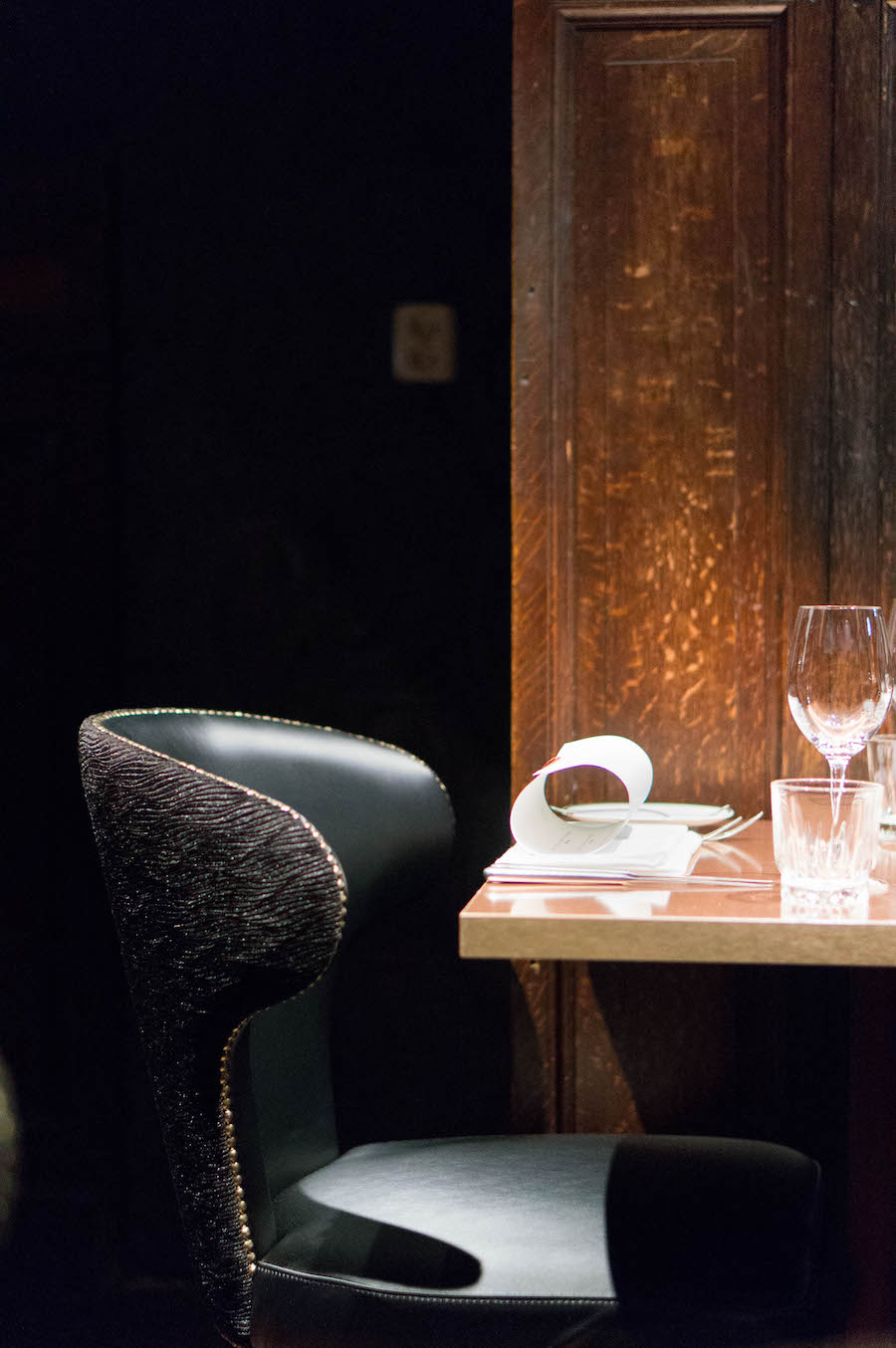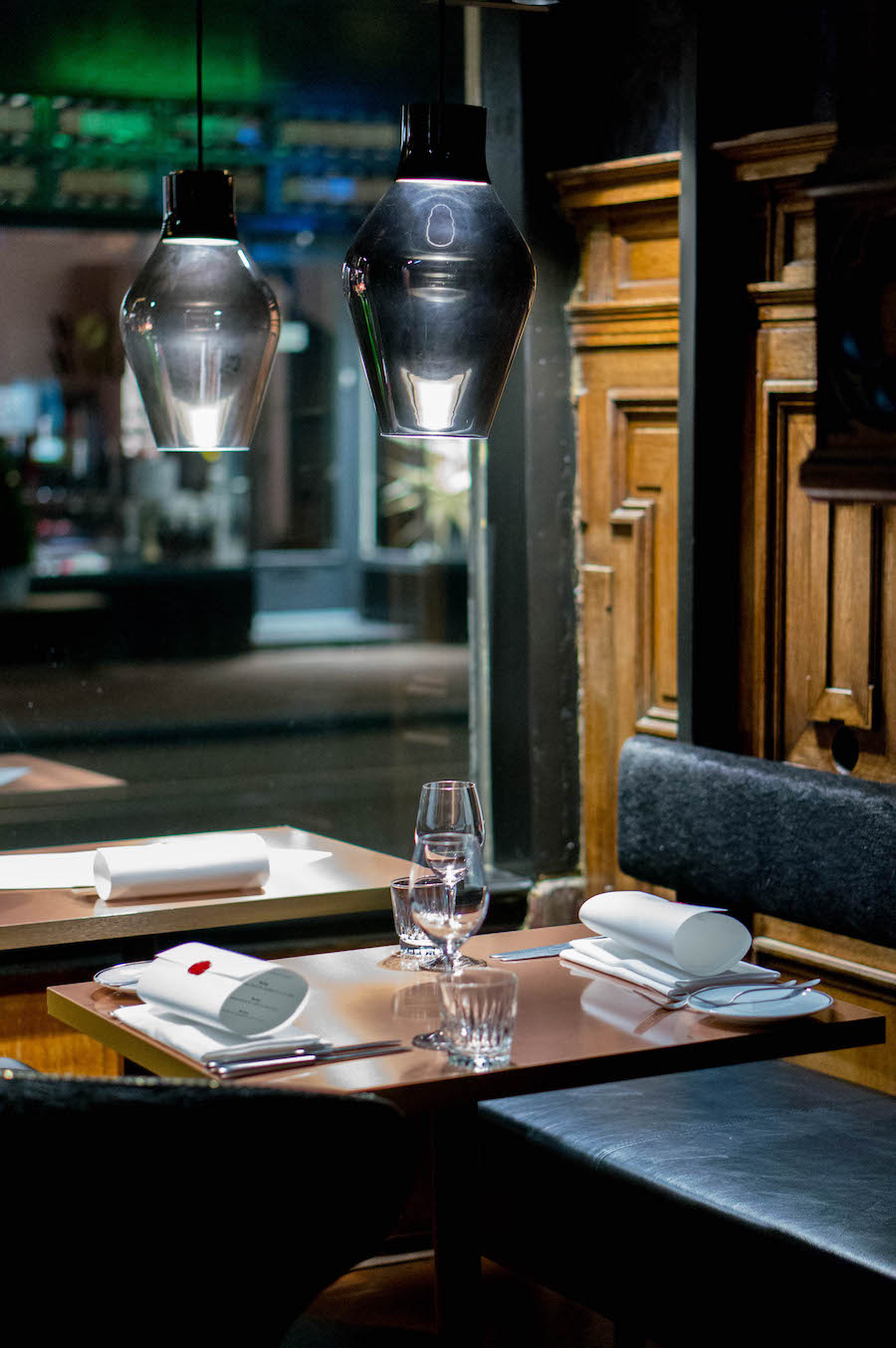 Het heeft wat weg van een gezellige Amsterdamse kroeg, met name door de houten trappen en de kerk- en kloosterdeuren, maar heeft ook iets boudoir-achtigs. Donker en een beetje spannend en mysterieus, zonder af te schrikken. Het is namelijk ook warm en persoonlijk, de bediening uitermate vriendelijk en relaxed.