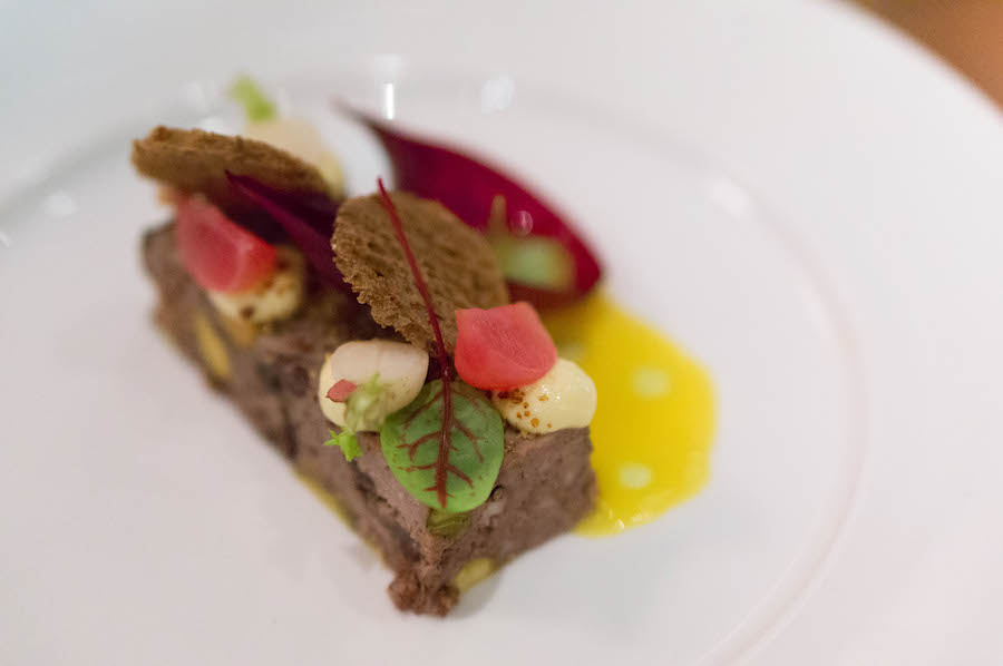 Een (groot) verschil: oma maakte er écht geen Sauce Royale bij. Die noemen ze ook wel koningssaus, zo legt de souschef uit aan onze tafel. Voor deze saus gebruikten ze het bloed van de haas en ganzenlever. Dat levert een hele rijke, volle saus op. Tussendoor liggen druppels yuzu-gel die regelrecht door die rijke smaak heen snijden. Mooi.