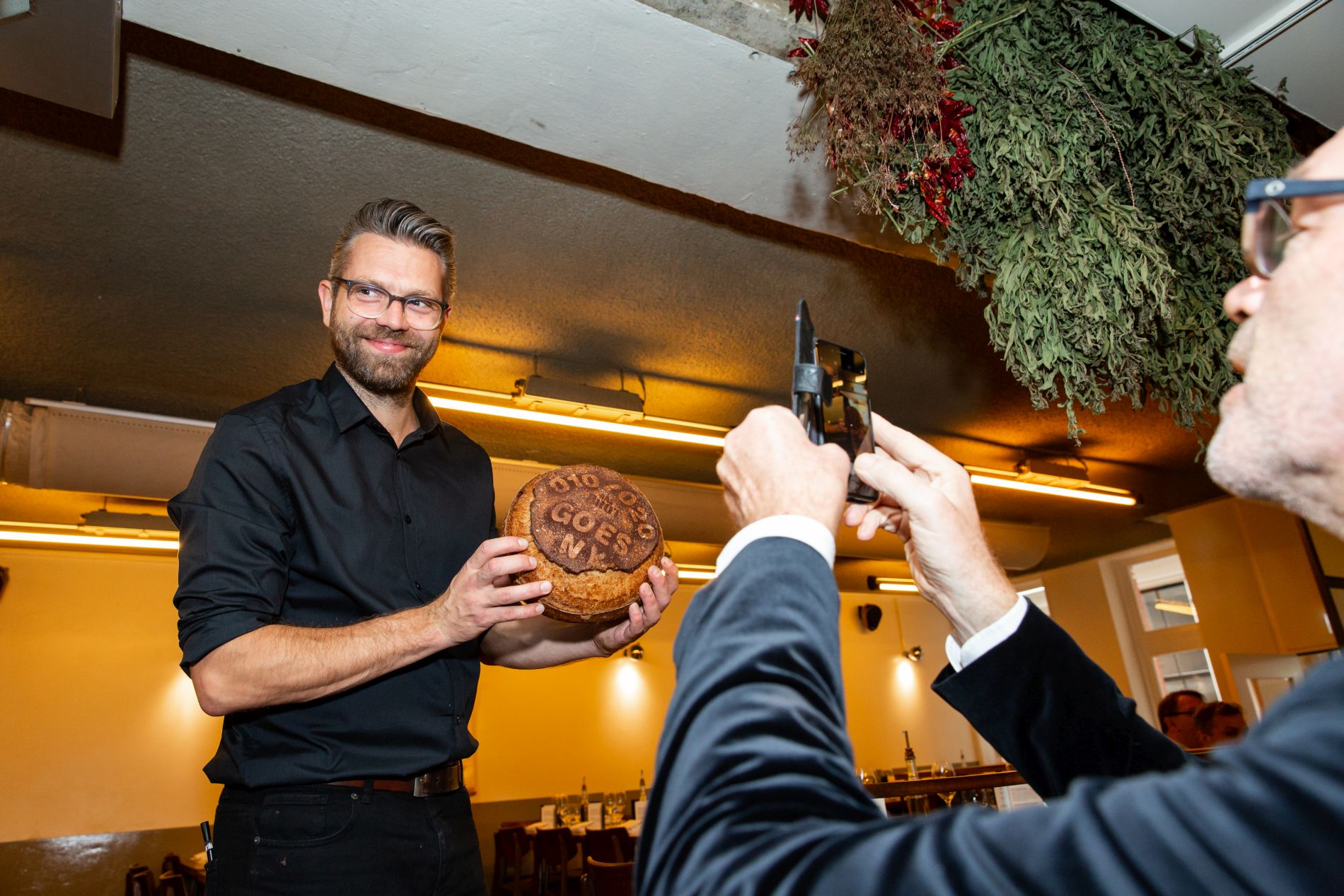 Elk restaurant is verantwoordelijk voor een bepaalde gang met een bijpassende wijn. Daarvoor gaan ze niet urenlang zitten communiceren aan een keukentafel, hoe romantisch dat ook lijkt. Want in de praktijk blijkt WhatsApp toch beter te werken. “Dat heeft iedereen bij de hand. Je kunt snel schakelen.” En het werkt. Guus: “Er is niemand die stijf gaat liggen van: ik wil dit en dat maken. Als dat niet kan, maak ik wel het dessert, zo gaat het meer.”