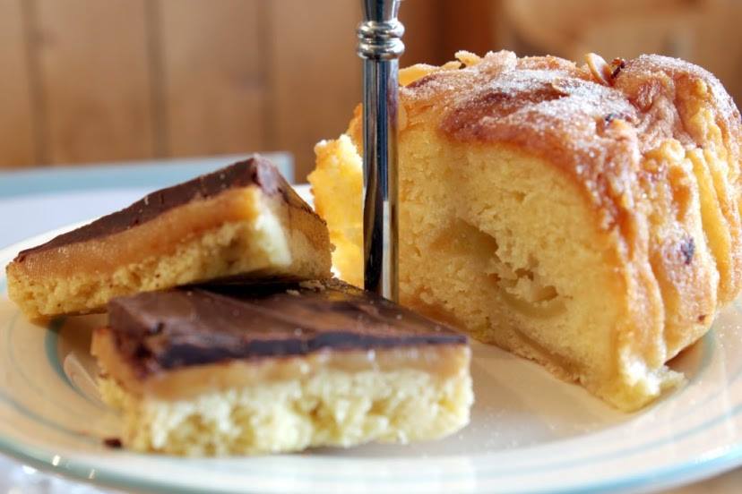 Je zou het misschien niet zeggen, maar de appel- en amandelcake op de foto hieronder zijn geheel glutenvrij. Lucy’s staat dan ook bekend om haar o zo heerlijke glutenvrije menu.