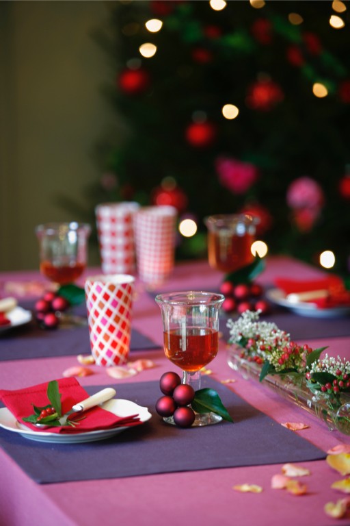 4. Gebruik voor een extra kerst-effect spulletjes uit je kerstboom, en leg deze in het midden samen met wat mooie (schone) kerstakjes of denneappels. Het oogt niet alleen mooi, maar het ruikt ook goddelijk! Ook mooi om rond de voet van je glazen te draperen.