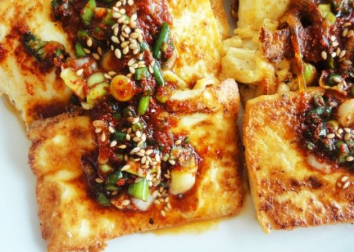 Natuurlijk mocht een gerecht met tofu niet ontbreken in deze lijst, en daarom kozen we voor deze Koreaanse variant met een pikant sausje.