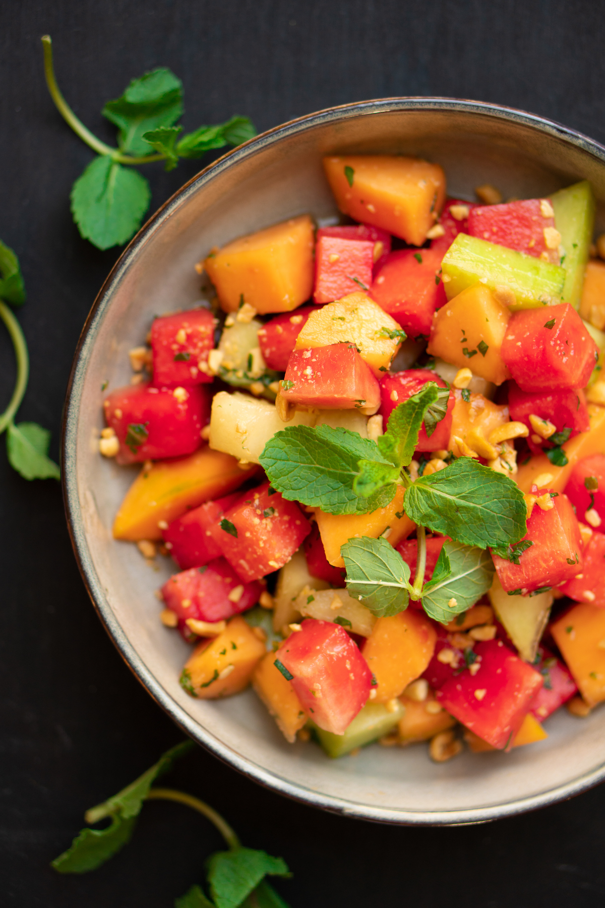 8. Harige Aziatische meloensalade met pinda’s en munt