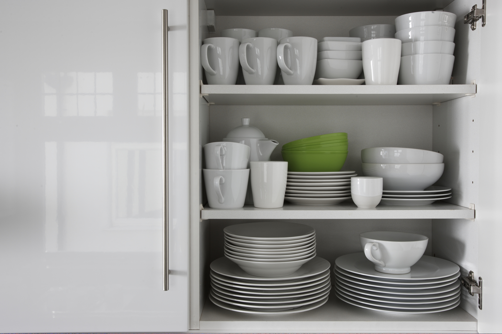 4. Kijk kritisch naar je servies. Welke borden en schaaltjes gebruik je veel? Zet die vooraan en in een prominent kastje. Dat gekke pastaservies of die Kerstmokken kunnen achterin de kastjes, of nog beter: in een doos naar zolder. Kijk kritisch, wellicht kun je de helft wel weggeven of doneren aan een goed doel.