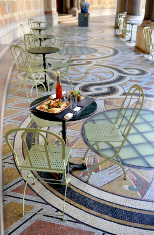 Le Petit Palais is het museum van de schone kunsten in Parijs. Normaliter staan hier lange rijen met mensen die hun portemonnee om entree te betalen al getrokken hebben. Maar wat bijna niemand weet, is dat je via een klein deurtje rechts van de grote trap, gratis naar binnen kunt en het café-restaurant kunt bezoeken. Deze zit op één van de mooiste plekken van Parijs. Er is geen uitgebreide kaart, maar voor een paar lekkere hapjes, zoetigheden, koffie of champagne zit je hier perfect.