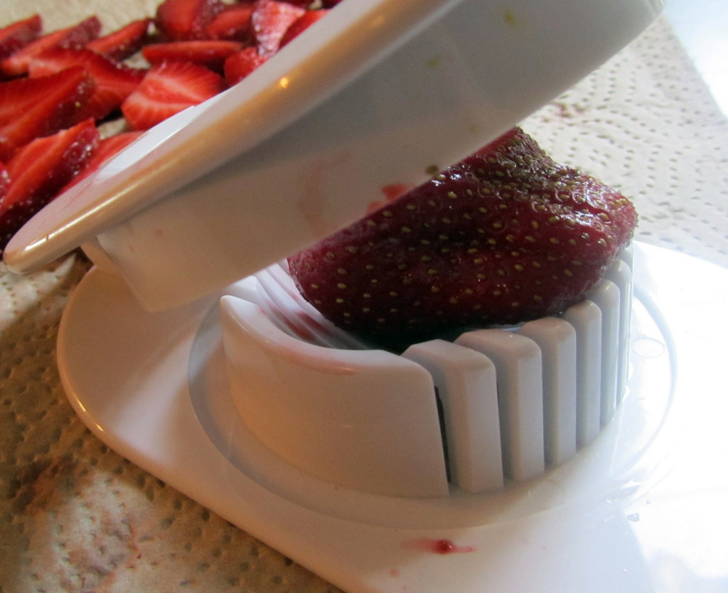 10. Snijd mozzarella of aardbeien in fijne plakjes met een eiersnijder.