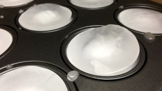 8. Maak enorme ijsklonten in een muffintray in de vriezer.