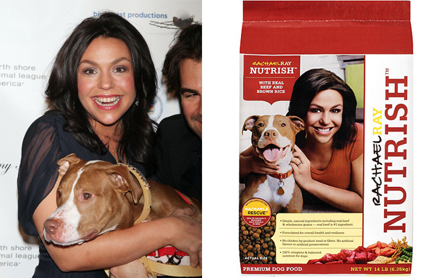 Amerikaanse televisiepersoonlijkheid Rachael Ray koppelt haar gezicht aan hondenvoedsel (!).