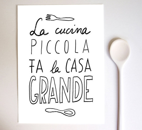 Hang kunst aan de muur; bestel een toffe poster van Etsy, of print zelf een inspirerende tekst of grappige culinaire illustratie uit.