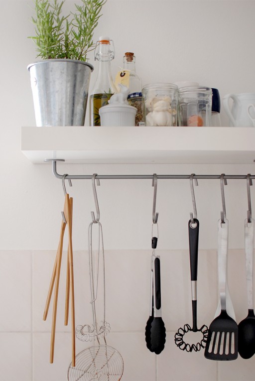 Een rekje voor je keukentools is ideaal; hang ‘m dicht bij je fornuis zodat je er steeds snel bij kan.