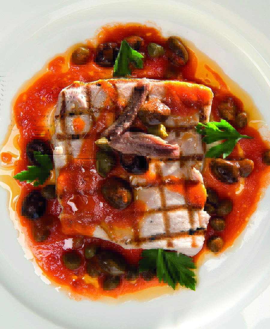 Wil je er een smaakvolle saus bij serveren? Maak dan deze zwaardvis à la puttanesca uit het prachtige boek Pure Italiaanse keuken.