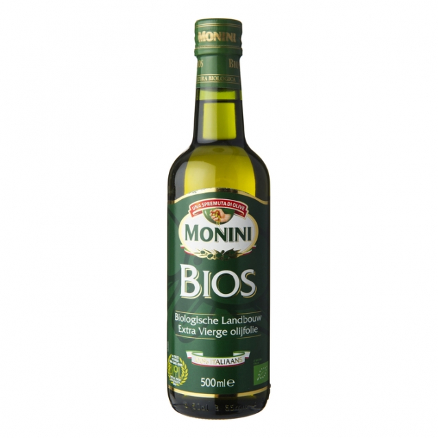 De Monini Bios is een biologische olijfolie, eveneens verkrijgbaar bij de bekende blauwe supermarkt. De smaak is fris & fruitig, met een licht pittige ondertoon. Heerlijk voor bij brood met een snuf zeezout, maar ook voor over salades, vis en pasta. Een halve liter kost je €5,99.