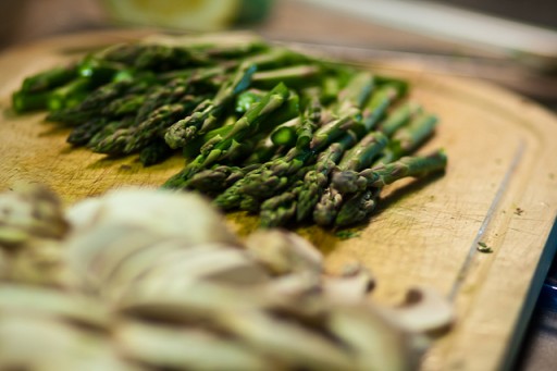 Kook bijvoorbeeld groene asperges of broccili voor, fruit een uitje met knoflook en denk na over de grootte van de stukjes.