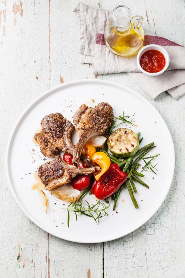 3. Lamsvlees doet het goed met mediterrane groenten. Rooster rode en gele paprika’s, uien, courgettes en haricot verts en serveer met op hoog vuur geroosterde lamskoteletjes, veel peper en je favoriete groene kruiden.