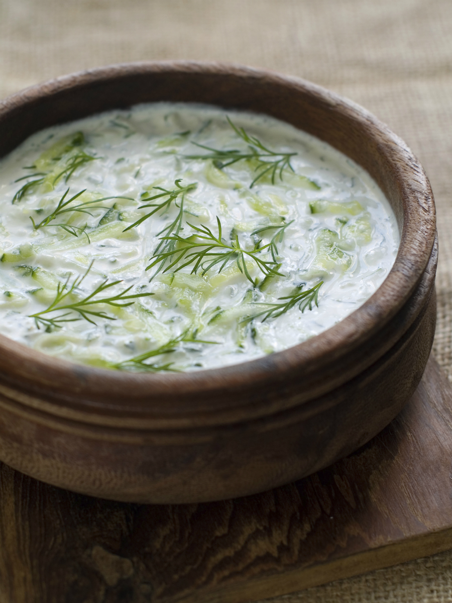 Een komkommersalade zelf maken is super easy. Was een stevige komkommer en halveer in de lengte. Verwijder de zaadlijsten met een lepeltje en snijd in dunne plakjes. Meng de stukjes komkommer met Griekse yoghurt, een beetje citroenrasp, dille en peper en zout. Een kind kan de was doen!