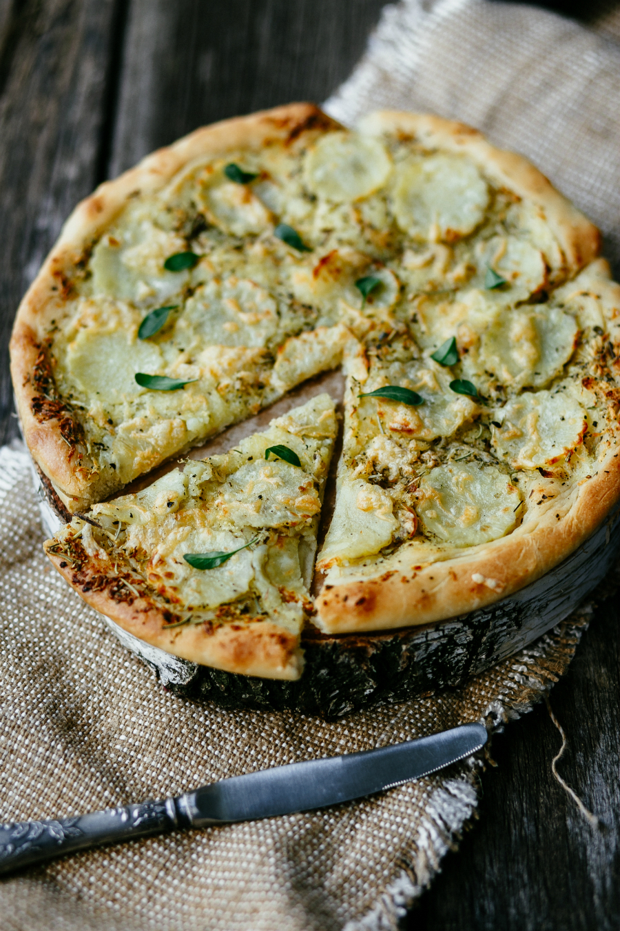 Een klassieke combinatie is pizza bianco (dus met een ‘witte’ basis zoals mascarpone) met schijfjes flinterdunne aardappel. Natuurlijk extra lekker met een beetje geitenkaas, tijm en verse basilicum.
