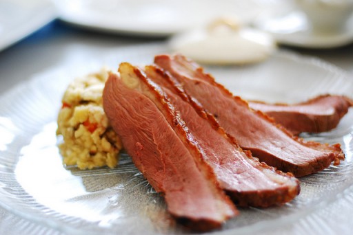 Tegenwoordig zijn er op verschillende plekken kwalitatief hoogstaande eendenborsten verkrijgbaar. Kerf met een scherp mes ruitjes in het vet van ongeveer een halve centimeter diep. Kruid beide kanten met peper en zout en bak ze op hun vetrandje in een loeihete pan.