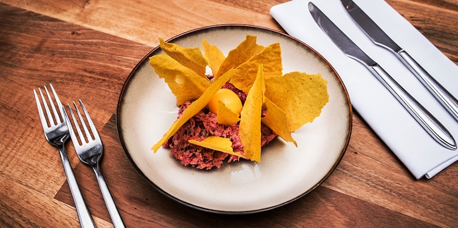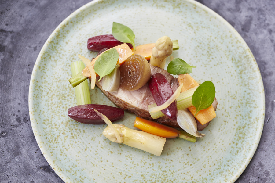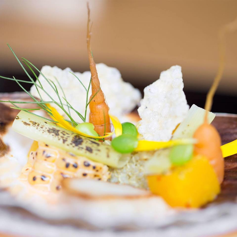 Denk aan Langoustine met varkensrib, gerookte biet en appeljus of ceviche van baars met aardpeer en Thaise curry.