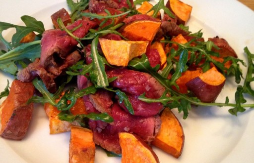3. Lauwwarme biefstuksalade met zoete aardappel
