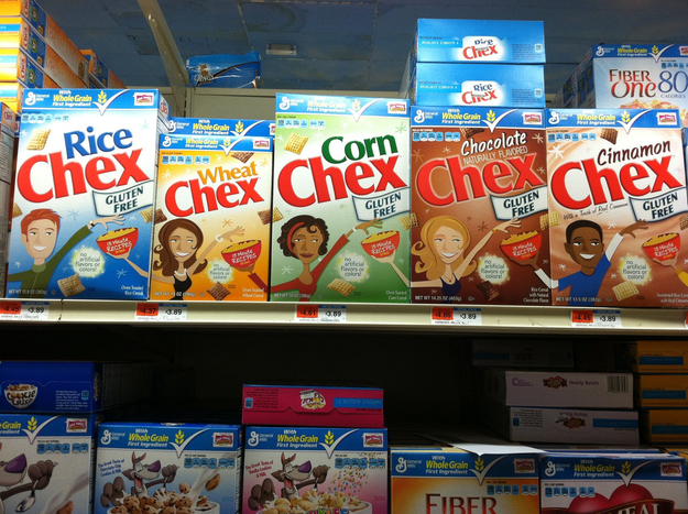 De dozen van het Amerikaanse merk Chex gaan precies hand in hand