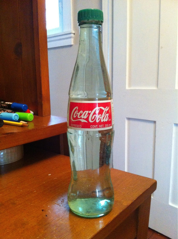 Plastic Coca Cola doppen passen precies op de glazen Cola-flesjes
