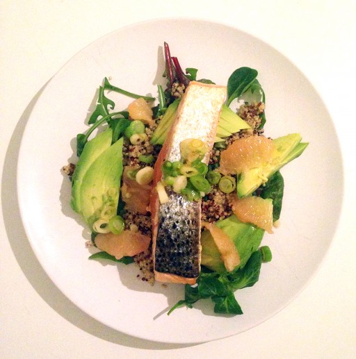 3. Grapefruit is heerlijk in salades en gecombineerd met vis. Zoals in deze maaltijdsalade met zalm, quinoa en avocado; het perfecte maaltje voor een doordeweekse avond! Het recept lees je hier.