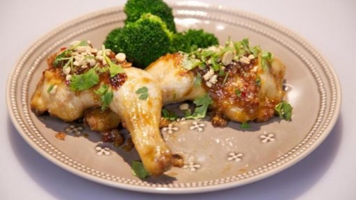 Krokante kip met zelfgemaakte pindakaas