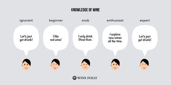 Mede hierom moesten we toch een beetje lachen om deze lollige graphics over wijnkenners van de website Wine Folly.