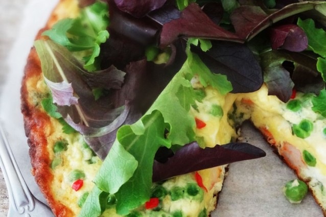 7. Lente frittata met citroen, garnalen en doperwten