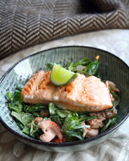 Gegrilde zalm is nog zo’n topper in de zomer. Hier maak je er een salade van in combinatie met garnalen, wat veldsla en frisse limoenmayonaise. Wil je een maaltijd die iets meer vult? Eet er dan wat Turks brood of gebakken aardappeltjes bij.