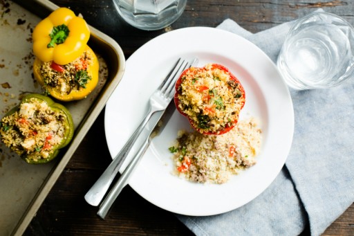 8. Gevulde paprika met couscous, gekruid gehakt en feta