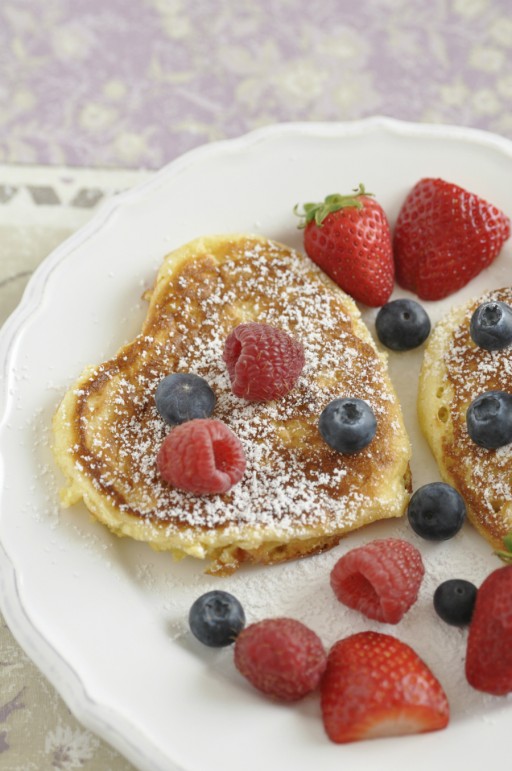 Dan is het tijd om te lunchen, en wel met hartvormige pannenkoeken! Serveer er een beetje rood fruit bij en romantischer kan het bijna niet worden.