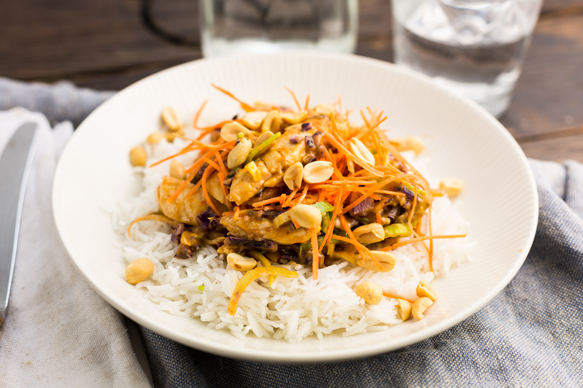 Pindakaas is ook een handige basis voor Aziatische en Indiase curry’s. Zoals deze curry met kip en pinda’s.