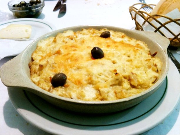 De Portugese keuken staat bekend om de vele ovengerechten met ingrediënten als room, kaas en vis, en Bacalhau com natas (kabeljauw met roomsaus) is hier een typisch voorbeeld van. De hoofdingrediënten van deze ovenschotel zijn aardappelen, ui, kabeljauw en room. Een beetje gegratineerde kaas maakt het eenvoudige, maar zeer smakelijke gerecht helemaal af.