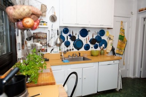 4. Gebruik ook je muren optimaal. Als je weinig (kast)ruimte in je keuken hebt, maak dan gebruik van je muren. Hang bijvoorbeeld je pannen en mokken aan spijkers of rekjes met haken.