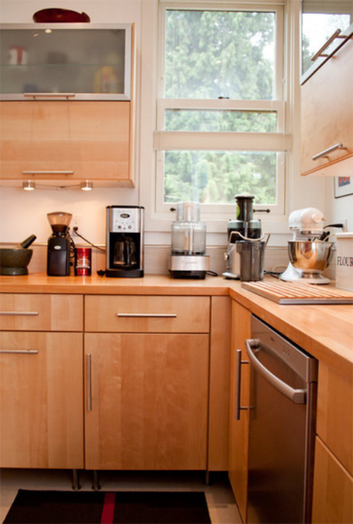7. Organiseer keukengerei op basis van functie. Je keuken werkt het fijnst wanneer alles op de goede plek staat. Organiseer daarom je keukengerei (alleen de essentiële dingen, zie stap 6) op basis van functie zodat dezelfde groepen bij elkaar staan. Denk hierbij aan het bij elkaar zetten van je kruiden, oliën en specerijen naast of bij je fornuis, en je planken en messen bij je aanrecht. Het klinkt wellicht overbodig, maar het zijn de kleine details die het verschil maken en veelal het meeste plezier opbrengen.