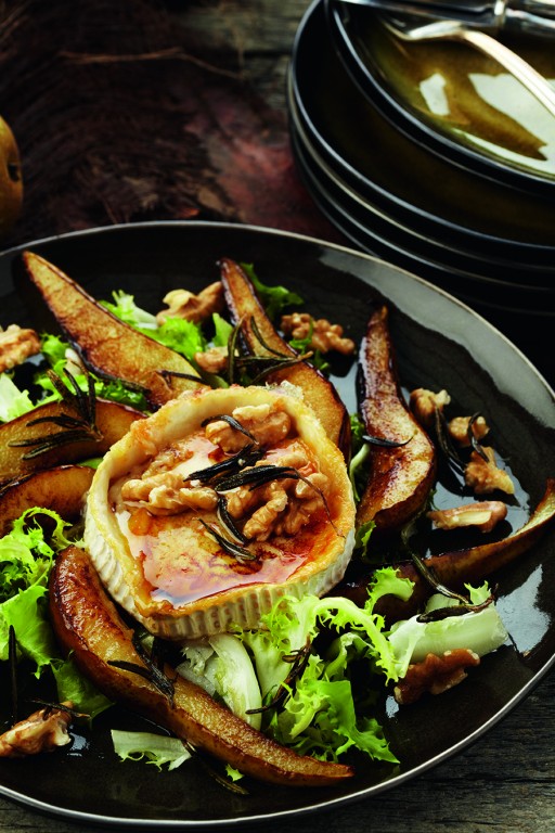 8. Gebakken peer met geitenkaas, honing en walnoten